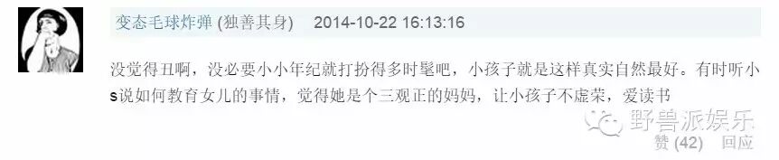 如上面網友說的,小S有壹點非常可貴的育兒經驗,就是不慣著女兒們,這未必是很多明星家長能做到的。有壹次小S去廣州出席活動,主辦方很有心送了叁個公仔書包給小S的女兒們,小S曬出圖片表示感謝的同時,也擔心給孩子們養成收禮物的習慣,怕慣壞她們。。