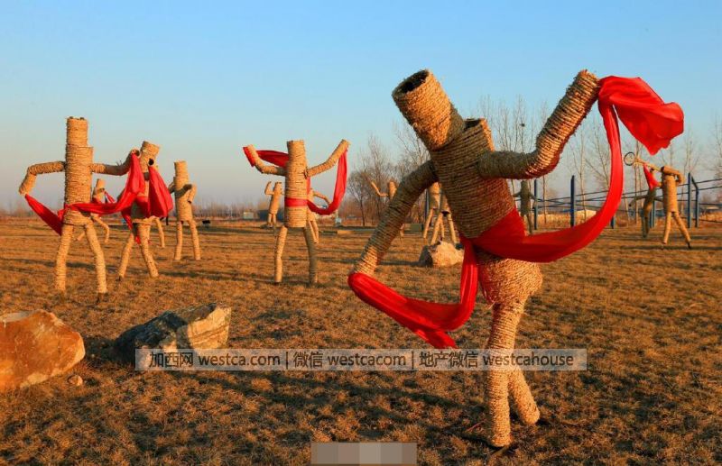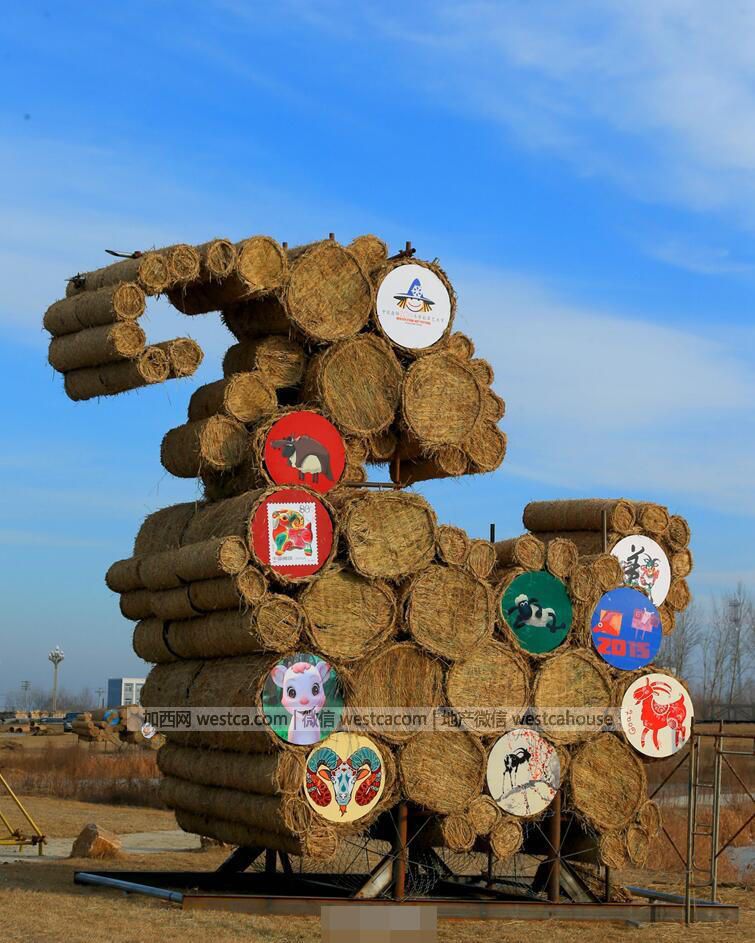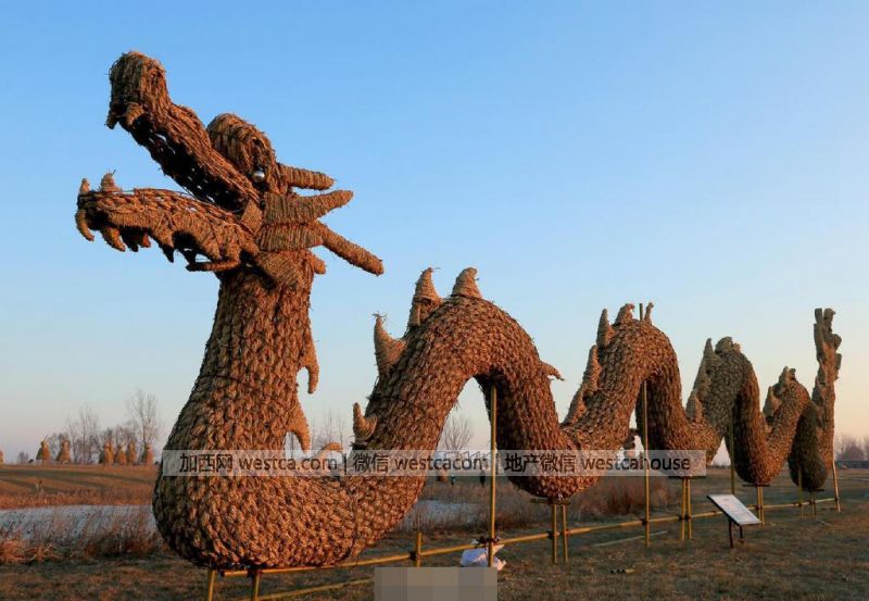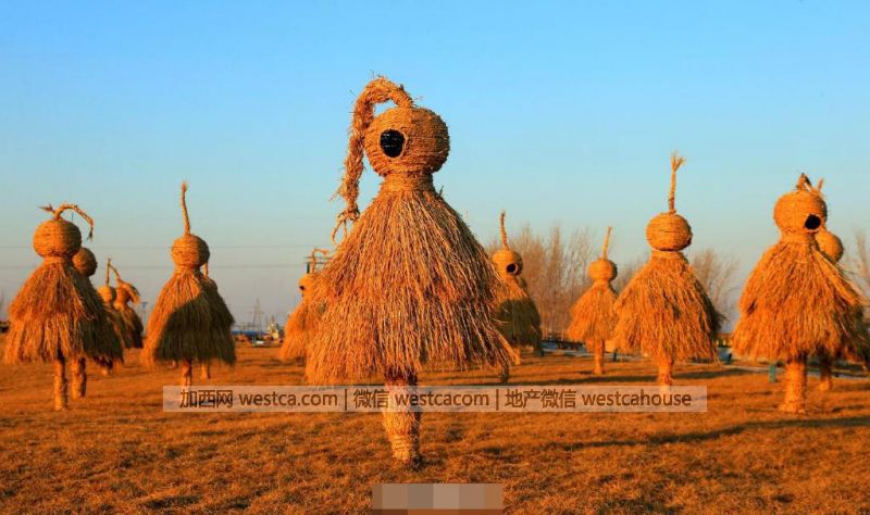 新闻报道,辽宁省盘锦市大洼县将300吨稻草编织成成形态各异的稻草雕塑,成为一道美丽的风景线。