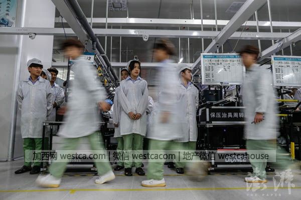 午休前,工人們列隊離開生產線,軍事化的管理是效率的保證。