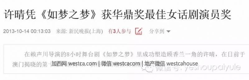 許晴還因此獲得了華鼎獎最佳女話劇演員獎