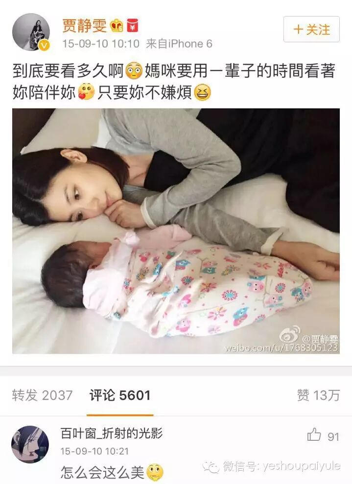 2015年8月7日,40歲的賈靜雯剖腹產下5.44斤的小咘咘