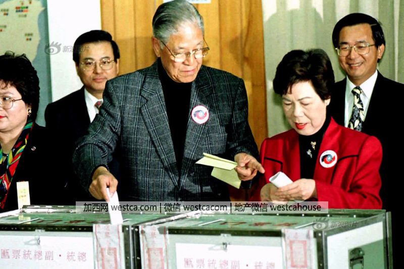 1988年,报禁和发禁解除。是年1月13日,蒋经国与世长辞,副总统李登辉宣誓就职。1996年3月的“大选”,是第一次台湾地区领导人的直接民选,李登辉击败民进党候选人,当选台湾历史上第一个民选“总统”。图为1996年3月,李登辉和夫人曾文惠在选区投入选票。