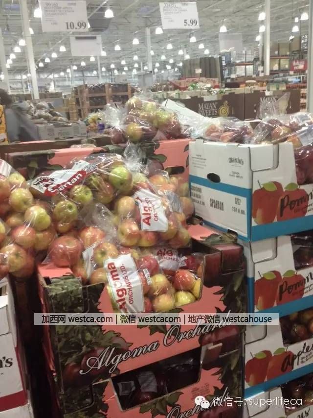 Costco的袋裝蘋果按品種和重量價格從$5.99-$10.99不等