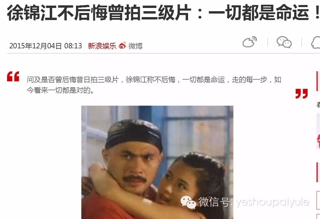 和吳啟華被騙不壹樣,徐錦江坦誠不後悔拍叁級片,說壹切都是命運的安排