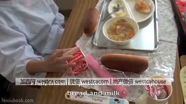 比如,今天的午餐就是炸鱼、马铃薯泥、蔬菜汤、面包跟牛奶。