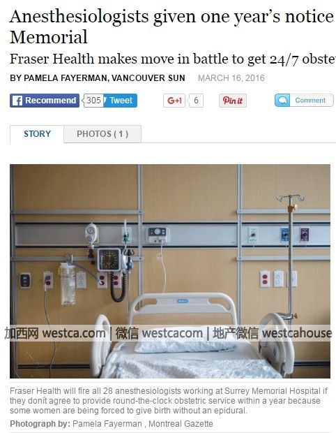 (加西网编译)菲莎卫生局近日表示,如果素里纪念医院(Surrey Memorial Hospital )的28名麻醉师在一年内不同意提供全天候的产科麻醉服务的话,就将被全部解雇。