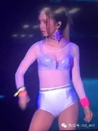 因為愛穿皮褲的鄧紫棋,這次換上了網狀薄紗、超短褲+胸罩的舞台造型。