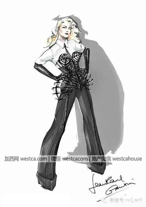 1990年,老頑童Jean Paul Gaultier為其”Blonde Ambition“演唱會所設計的金色錐形胸衣。
