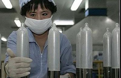 就这样,六架机器一秒不停地在玻璃模具上制造着安全套,一天的产量就超过50万只。