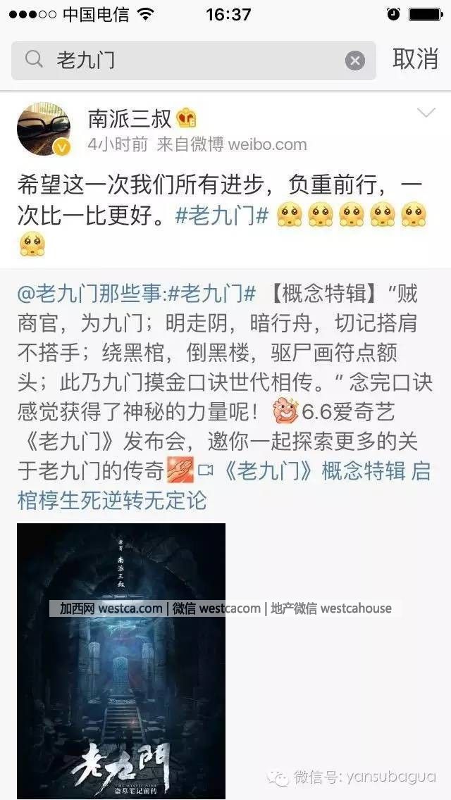 南派叁叔這次真的挺用心噠,在微博上兢兢業業連載著《老九門》小說