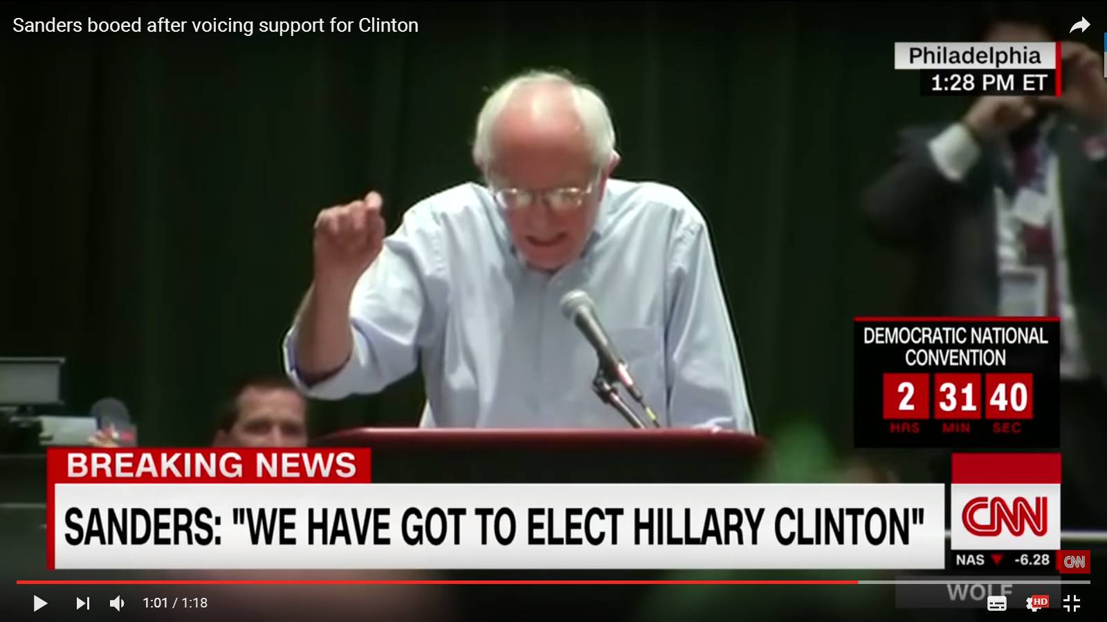 反对希拉里的声音太大,以至于在大会当天桑德斯亲自向他的支持者发话:“希望你们不要在会议厅中参与任何形式的游行和抗议”,真是为希拉里操碎了心。此外,在党代会开始的前几个小时,桑德斯对着他满满一屋子的支持者说,“我们一定要支持希拉里和蒂姆·凯恩(希拉里的VP)。”