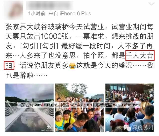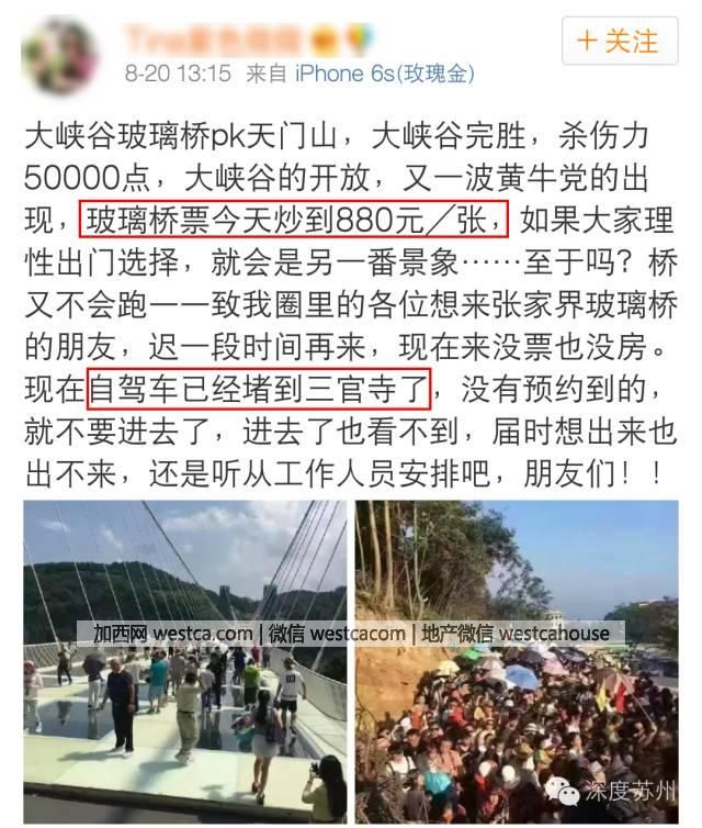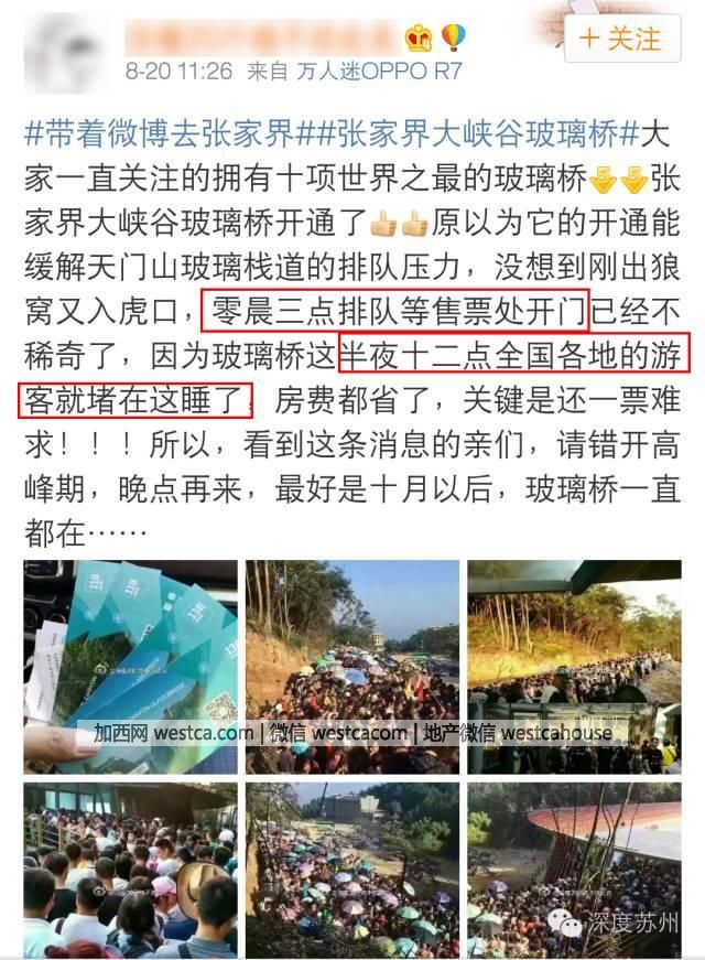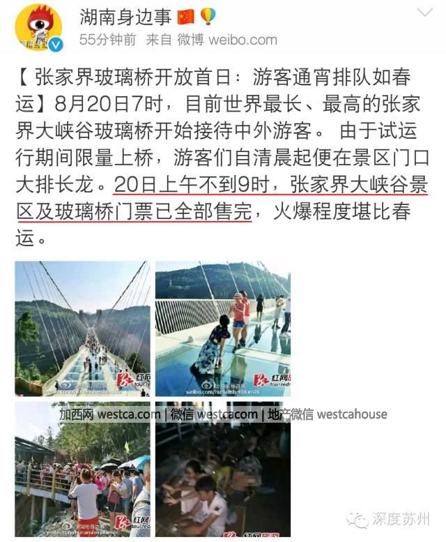 當天下午叁點前後,湖南的作家季良發微博稱張家界玻璃橋因游客人數過8000,不得不掛牌暫停接待!