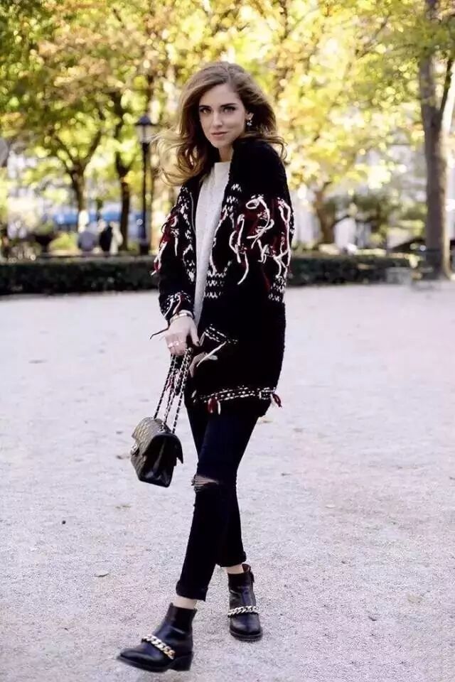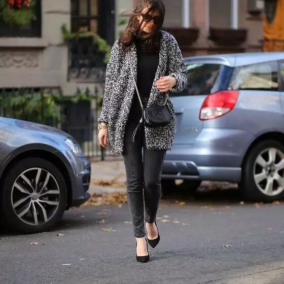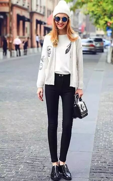 開身針織外套因為飄逸又貼身的特點與緊致緊身小腳褲搭配具有拉長身段調整比例的效果。特別是腰部臀部有肉肉的妞兒們,瞬間瘦回90斤!