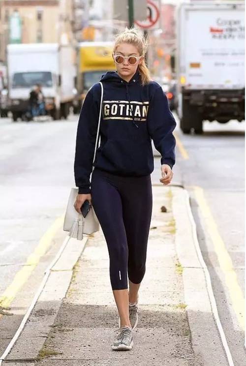 大衛衣搭配緊身小腳褲是減齡利器,廓形大衛衣可以遮擋肚子上的贅肉,總讓人有萌萌噠的感覺。微胖的女生最好選擇中長款,但不要長過大腿根。