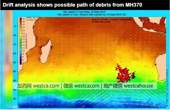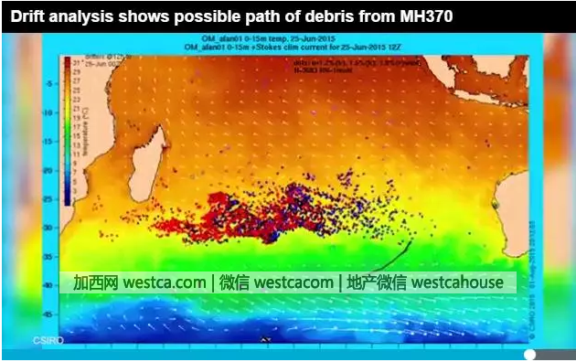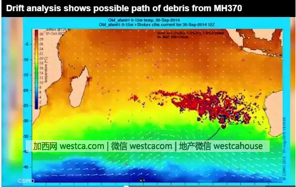 下面幾幅圖是澳大利亞通過數據分析判斷,失事飛機殘骸隨著洋流漂浮的趨勢圖: