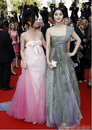 李菲兒 第63屆國際戛納電影節李菲兒與范冰冰同走紅地毯,壹襲粉紅漸變色蝴蝶結長裙少女感拾足,但不知道為什麼裙子就那麼滑落下去了,漏出胸貼,只能壹路捂住胸部。