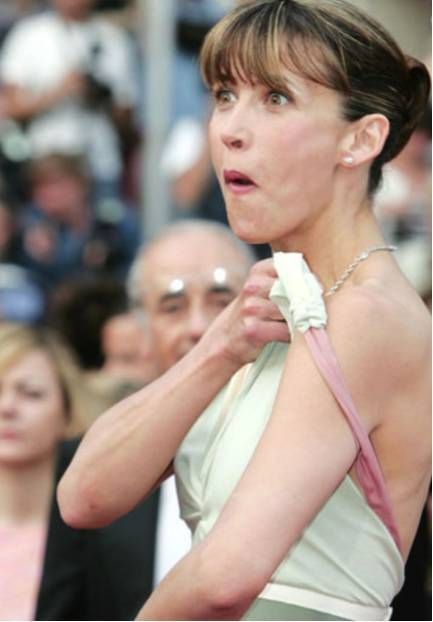 蘇菲·瑪索 第58屆戛納電影節紅毯上,女神蘇菲瑪索的長裙肩帶突然當眾滑落,整個“左半球”展露無遺。這壹香艷場面讓現場的壹撮記者和影迷們驚呆了。