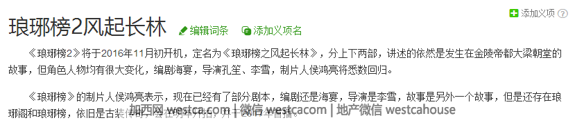 據正午陽光的官方消息,《琅琊榜2》定名為《琅琊榜2風起長林》,將分為上下兩部,預計將於今年11月在橫店、象山拍攝,預計拍攝周期為120天。
