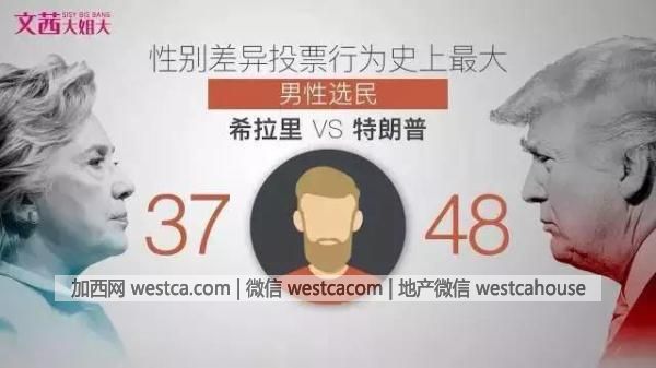 而男性选民大多数是支持特朗普的,希拉里只有 37% 的支持度,特朗普是 48%,赢了 11%。其中白人男性支持希拉里的只有 29%,支持特朗普的则高达 57%。