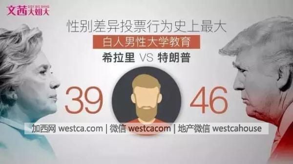 以前人们都说,受过大学教育以上的人总不会支持特朗普吧?结果这个范围内的人群 46% 都支持特朗普,还是赢了希拉里的 39%,教育程度在高中以及高中以下的人群中,希拉里只有 22% 的支持率,而特朗普有 65% 之高。