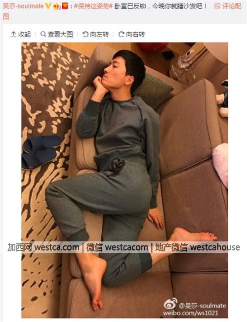 雖然吃瓜群眾看不下去,但是吳莎自己卻覺得沒什麼,假裝發了個小脾氣,讓劉翔晚上睡沙發,並配上了表情包。