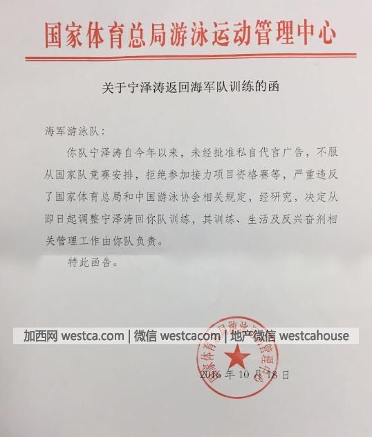 ①近日,壹份由國家體育總局游泳管理中心簽發的,關於將寧澤濤調整回海軍游泳隊的公函在網上盛傳,引來熱議。