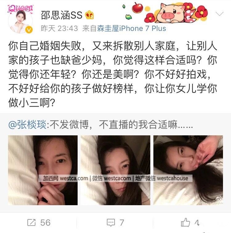 但可以理解,不管誰攤上這種事都會很激動,邵思涵之後還轉發了好多條,直指張棪琰铲枹冰囁家庭!