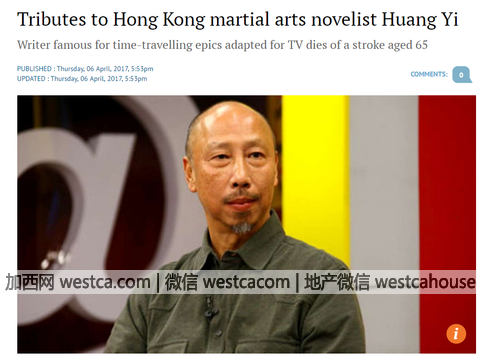 海外网4月6日电据香港南华早报报道,香港知名武侠小说家黄易周三(4月5日)中风并且于医院病逝,享年65岁。黄易原名黄祖强,曾获“翁灵宇艺术奖”,亦曾任香港艺术馆助理馆长。其着名作品如《寻秦记》及《大唐双龙传》广为人知,更被翻拍成电视剧。