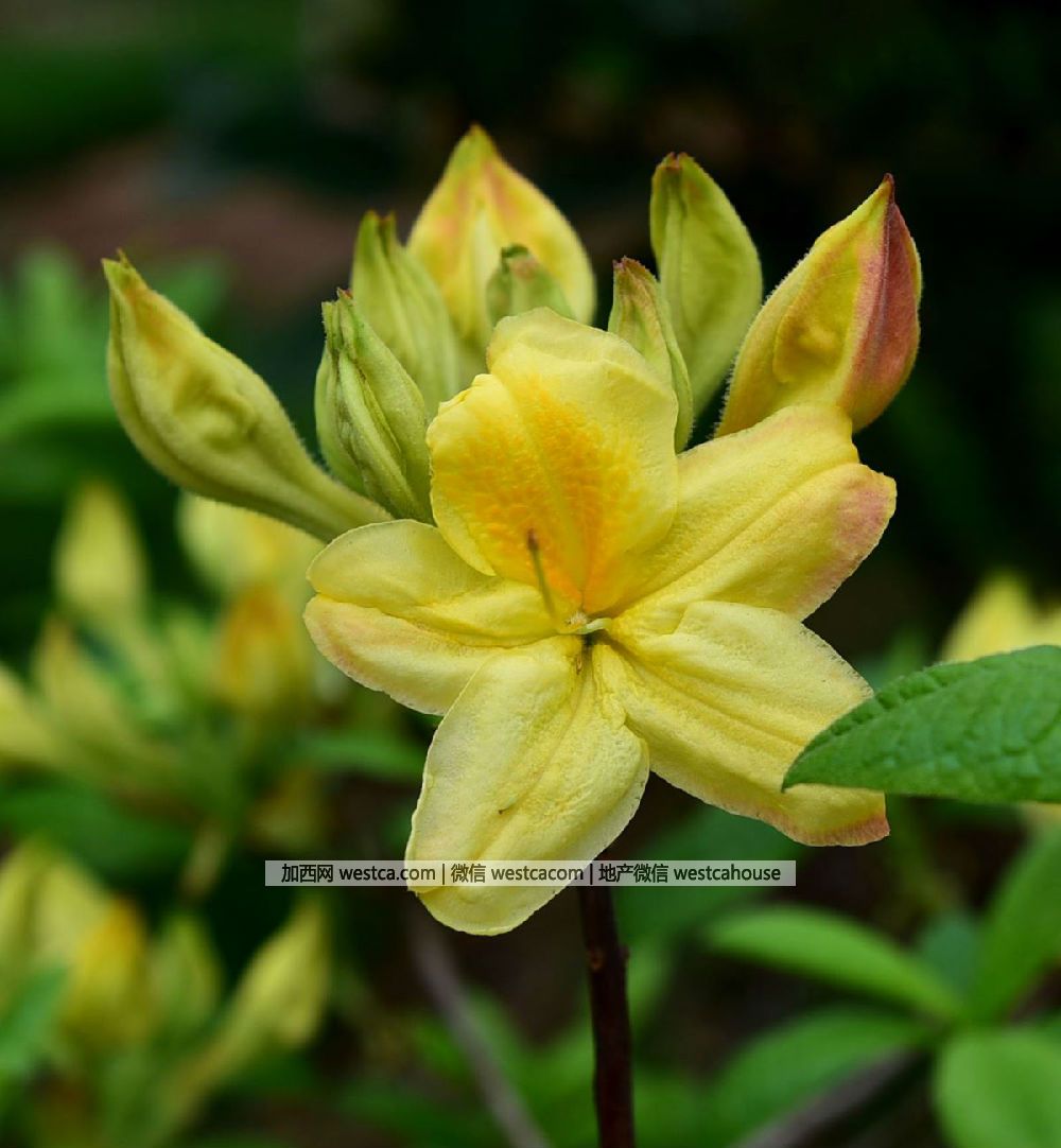 ‘金色夕陽’杜鵑(Rhododendron'Golden Sunset'):低地落葉杜鵑,花朵繁多,黃色或卵黃色,花冠闊漏斗形。