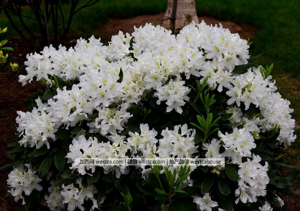‘酷娃’杜鵑(Rhododendron'Cunningham's white'):花朵寬漏斗形,白色,最上壹枚花瓣具淡紫色和棕紅色斑點,花束由7-8朵花組成。
