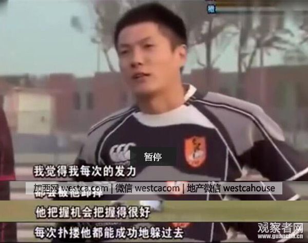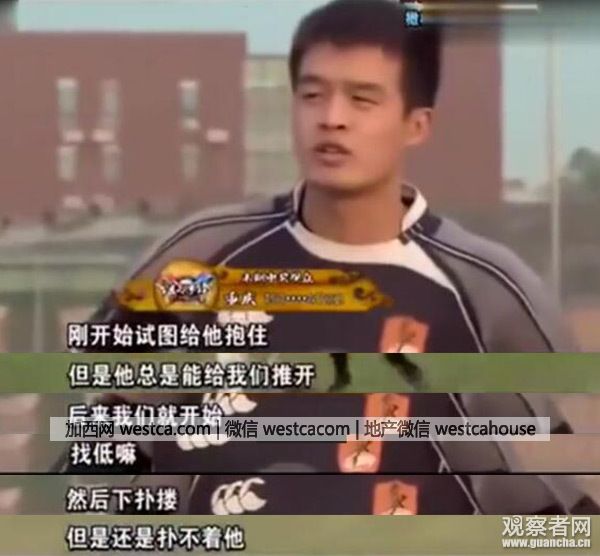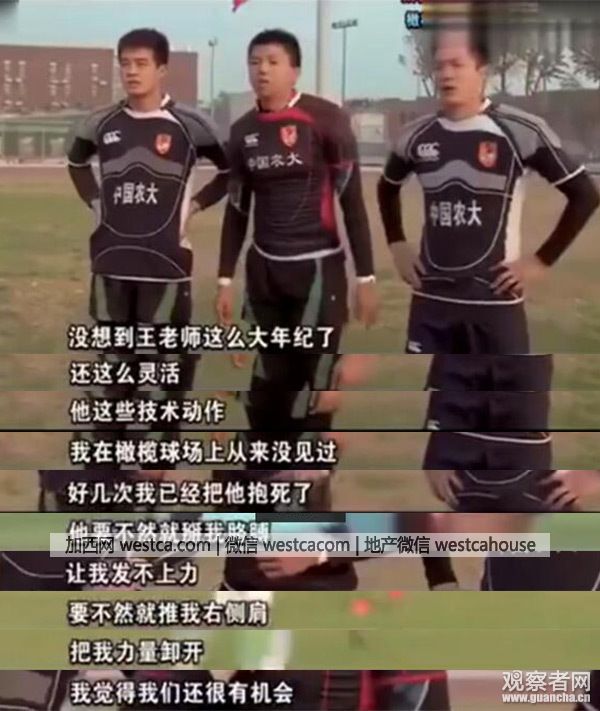 字幕解說稱:王老師轉身將(橄欖球運動員)摔倒在地: