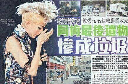 2013年,信托基金以1.4億港幣出售梅艷芳位於香港壽山村道故居及拍賣屋內遺物。梅艷芳的遺物也慘成垃圾,還是粉絲去翻垃圾堆盡量把東西回收。