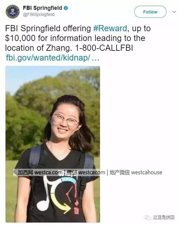 最近,案件又爆出壹條新線索:7月9日,美國密蘇裡州聖路易市當地的電視媒體KMOV報道稱,在伊利諾伊州壹個名為塞勒姆(Salem)的小鎮,很多人向當局報告曾見過章瑩穎,聯邦調查局(FBI)正在對這些報告展開調查。