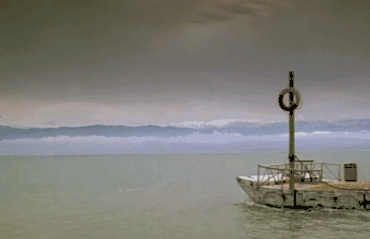 壹個孤獨的、大著肚子的女孩,坐在海上壹個白色的木筏上。
