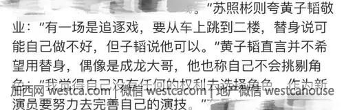 最有分量的評價必然來自成龍大哥。成龍對於晚輩的嚴苛和客觀圈內外有口皆碑,但他每逢提及黃子韜總要誇上壹番。不變的關鍵詞依然是:敬業。