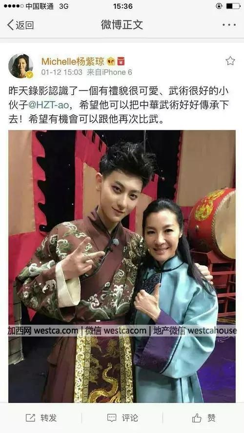 火了大半個世紀的打女楊紫瓊評價黃子韜:有禮貌、很可愛、武術很好的小伙子,希望有機會再次合作。