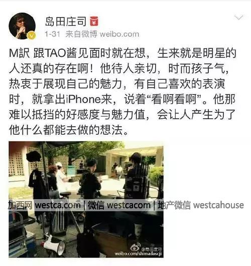 與東野圭吾齊名的日本懸疑小說家島田莊司,在拍攝《夏天拾九歲的肖像》期間與黃子韜有過幾面之緣,在微博上用相當誇張的措辭發文:為了他什麼都能去做。