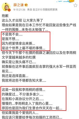 今天21:36,薛之謙發了微博長文,我們先來看看他的回應再來發言: