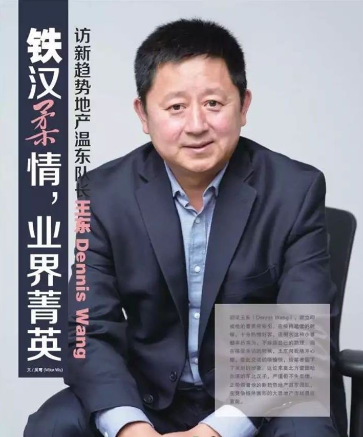 初见王东(Dennis Wang),就立即被他的豪爽所吸引。在接待笔者的时候,十分热情好客,连倒水这种小事都亲历亲为,不麻烦自己的助理。而在接受记者吴穹采访的时候,王东向他敞开心扉,彼此交流的很愉快,给笔者留下了深刻的印象。这位来自北方雪国哈尔滨的东北汉子,严谨但不失柔情,正带领着他的新趋势地产温东团队,在竞争格外激烈的大温地产市场勇往直前。
