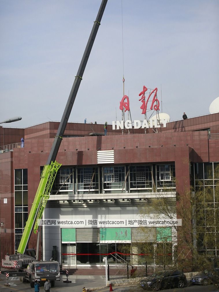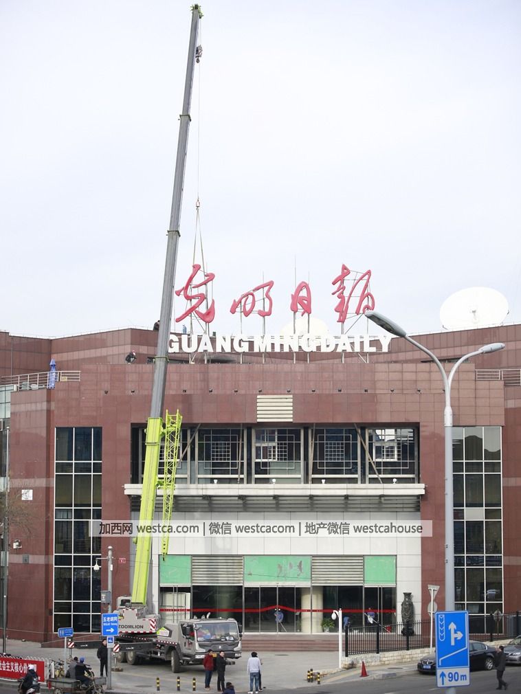 根据9月份出台的《北京市牌匾标识设置管理规范》相关要求,北京市16区城管部门开始集中拆除违规户外广告牌匾的工程,打造美丽“天际线”。图为12月9日,正式拆除《光明日报》大楼的广告牌匾。(图源:VCG)