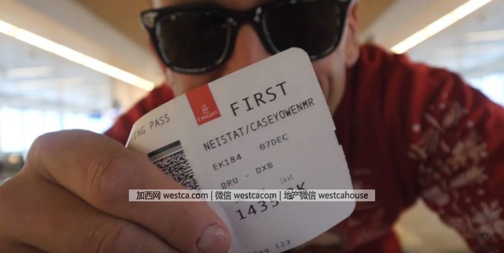 首先,還在機場的時候,小哥就秀了壹下自己手裡的頭等艙機票,證明此行非虛..