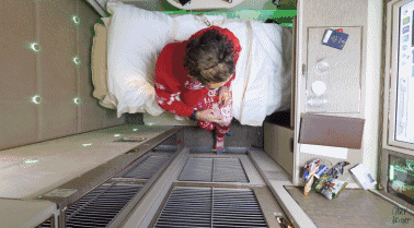 開門關門,開門關門...結果被空姐發現,尷尬地跑回房間裡了