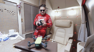 睡醒之後無聊,他又在包廂裡玩起了無人機...