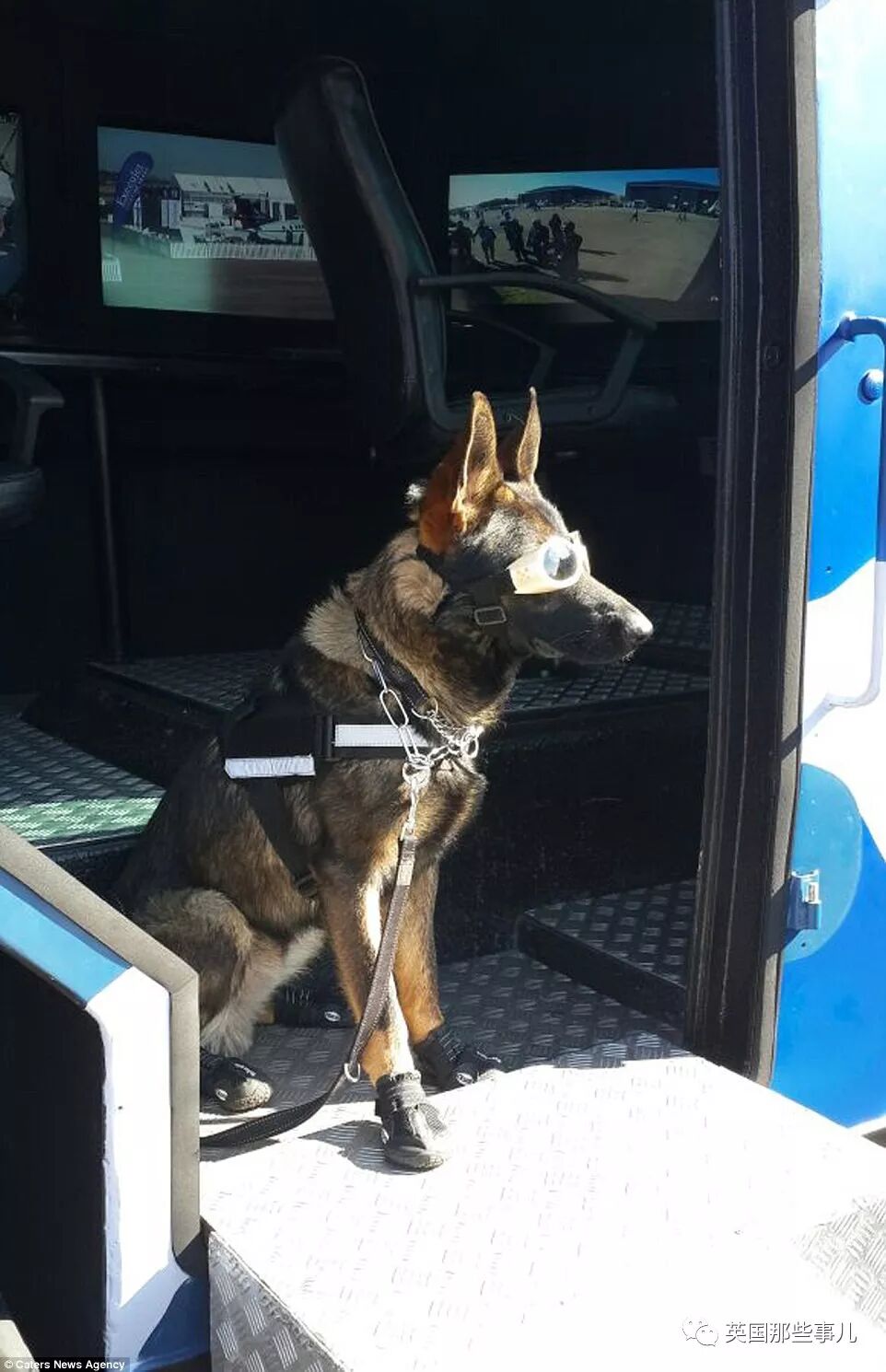 出任务的时候,汪星人系上降落伞背带,戴上护目镜、口套、耳罩等必备物品,