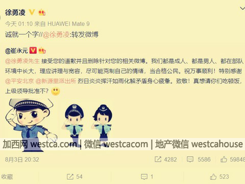 徐勇凌在微博向崔永元致歉