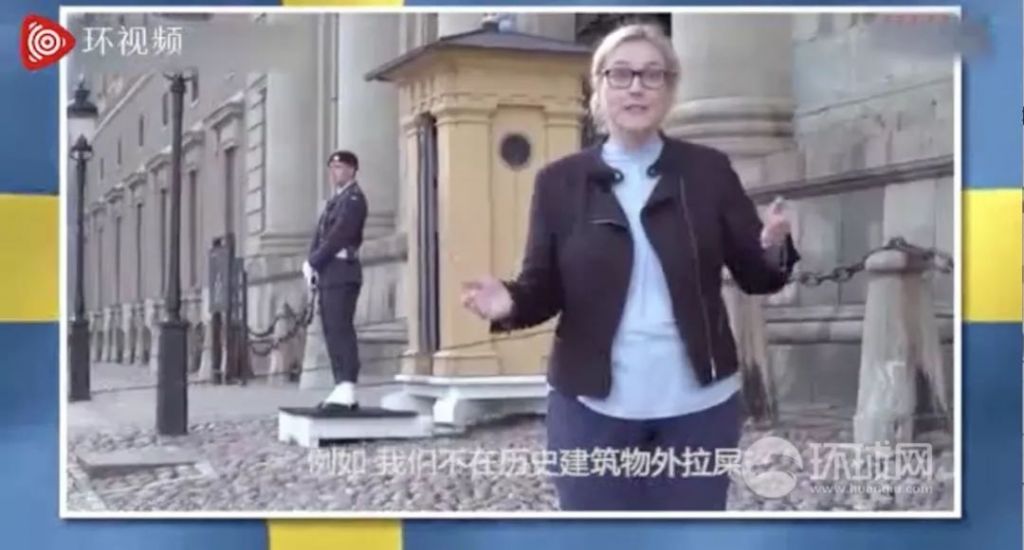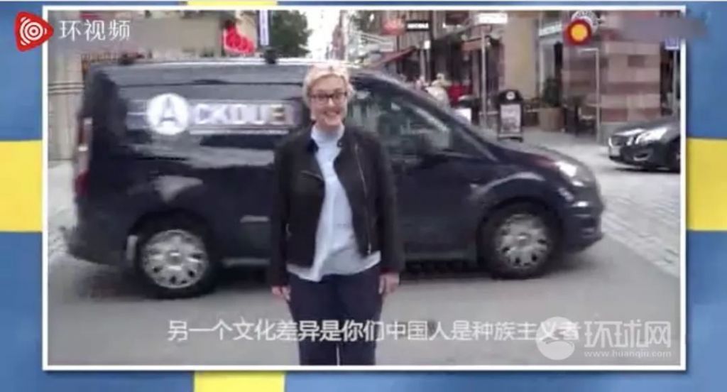 這段由瑞典國家電視台制作的視頻中,女主播以侮辱華人為樂,貫穿了整段影片。