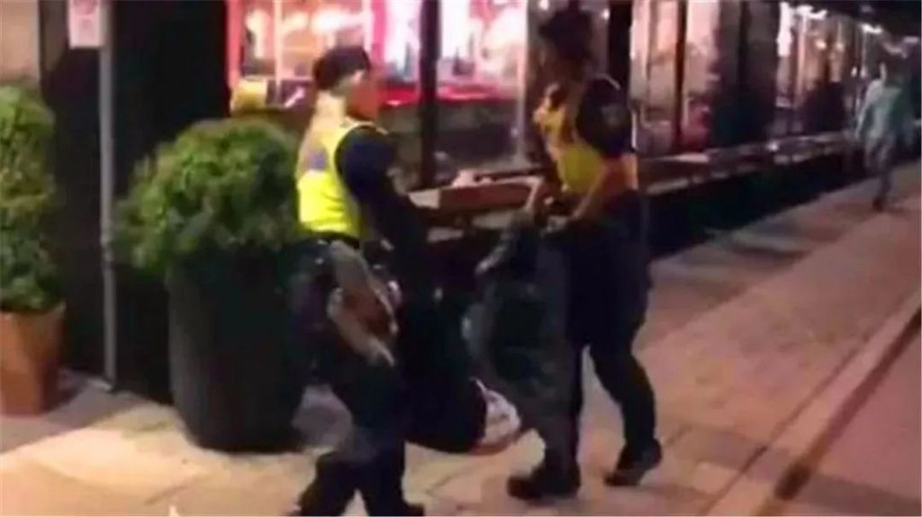 視頻最後,畫面再次切換到中國游客被警察抬出旅館的鏡頭,節目也在壹片哄堂大笑的畫外音中結束。