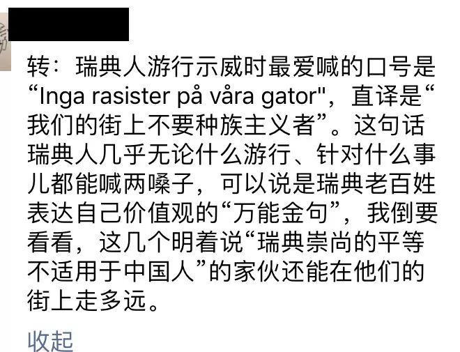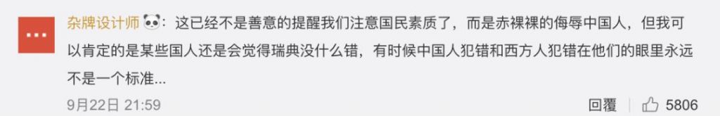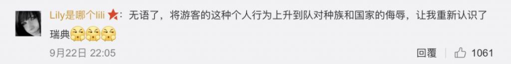 網友:“將游客的這種個人行為上升到隊對種族和國家的侮辱,讓我重新認識了瑞典。”