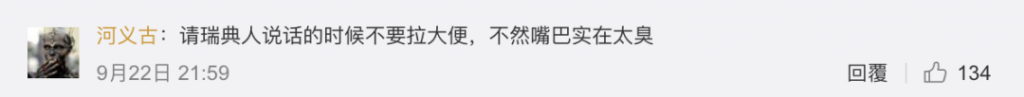 網友:“請瑞典人說話的時候不要拉大便,不然嘴巴實在太臭。”