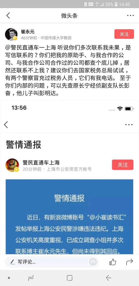 [崔永元] 崔永元回應上海警方多次聯系未果